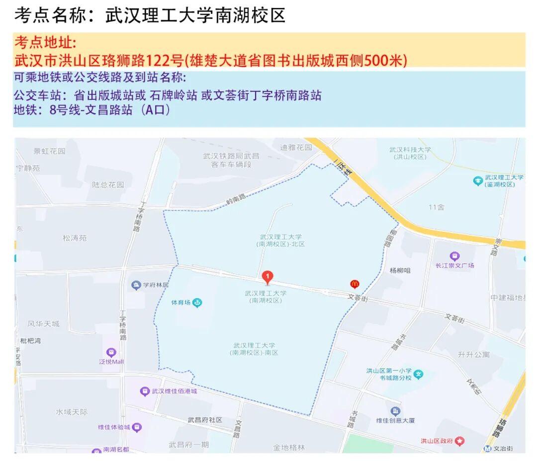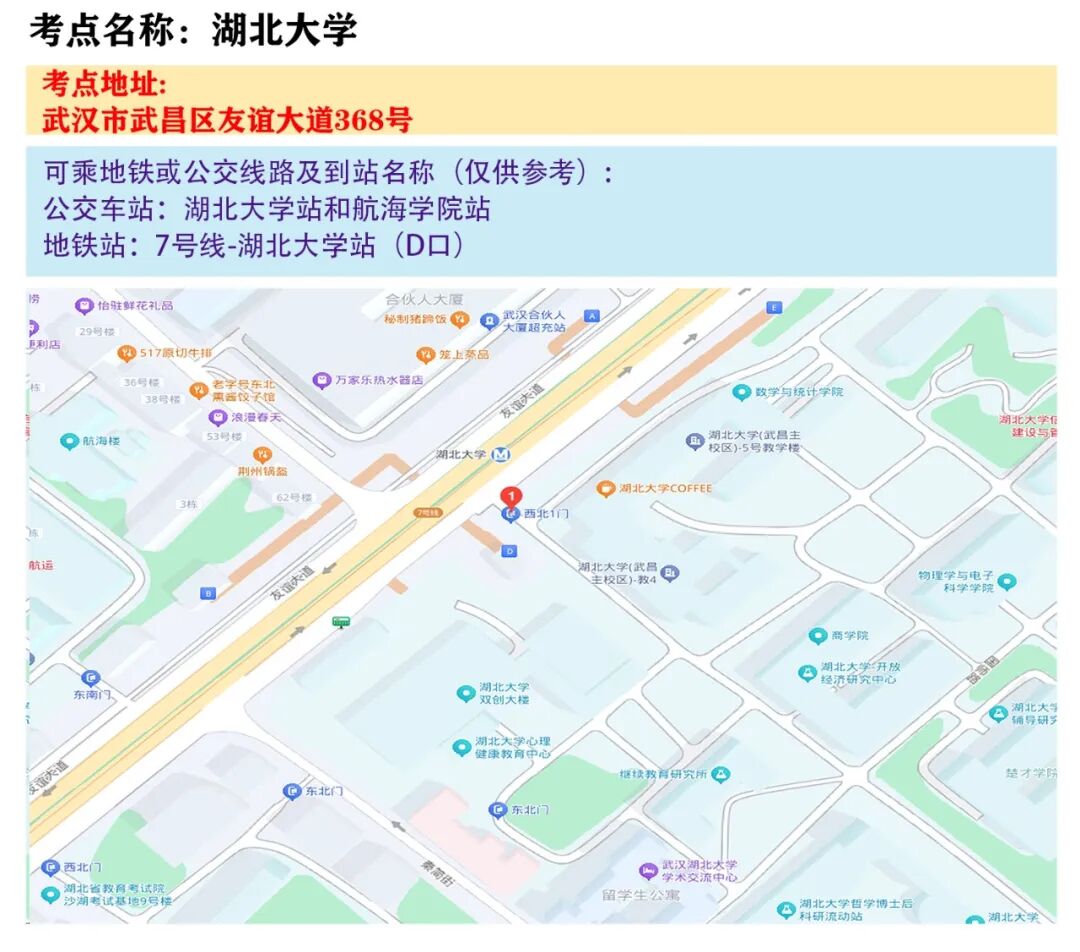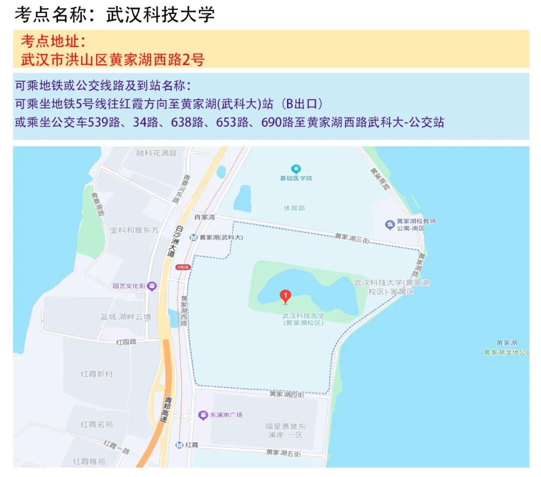 武汉考区考点地图