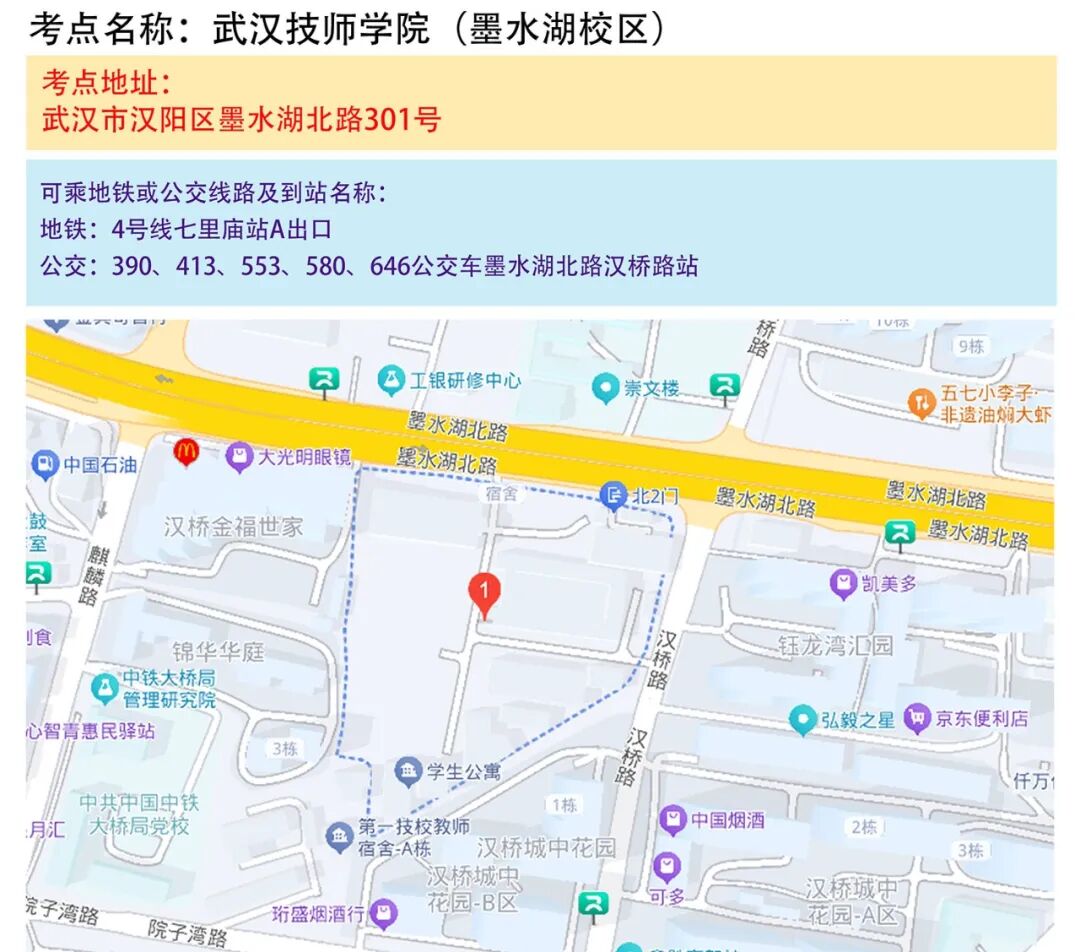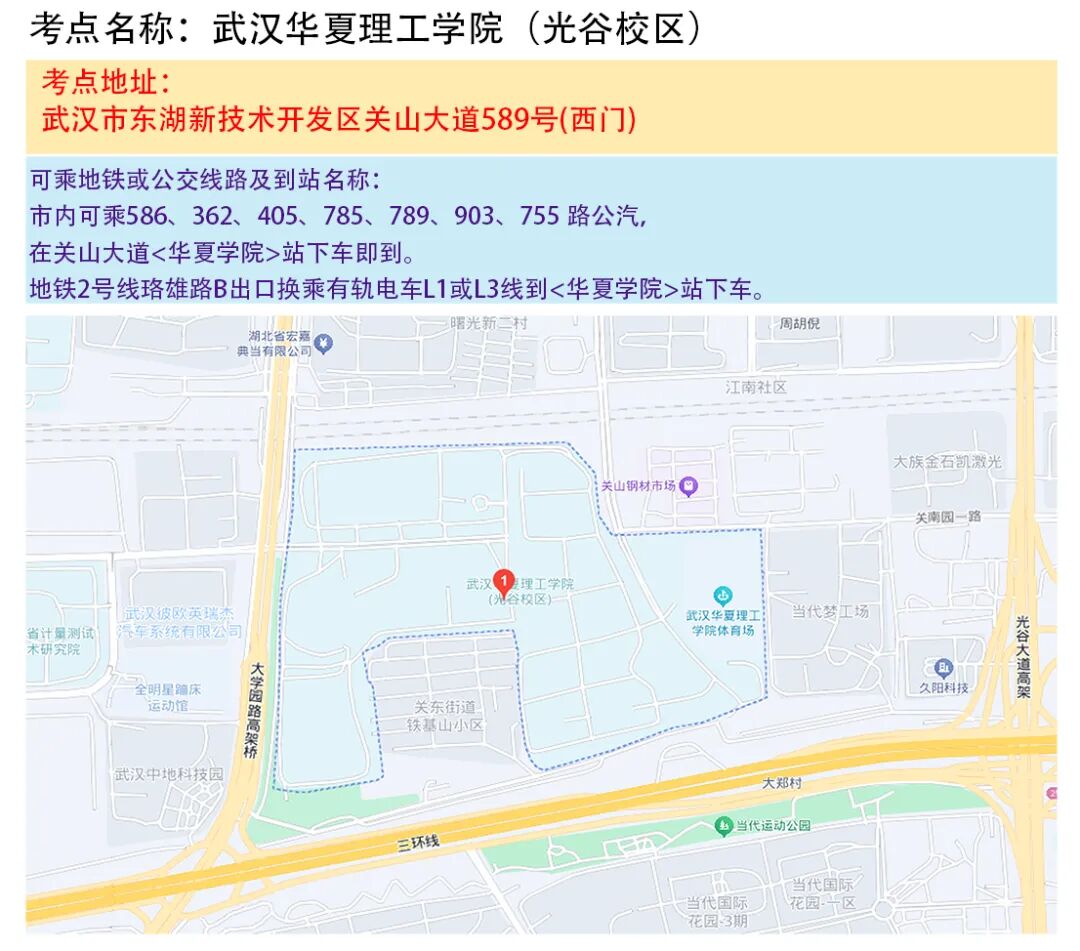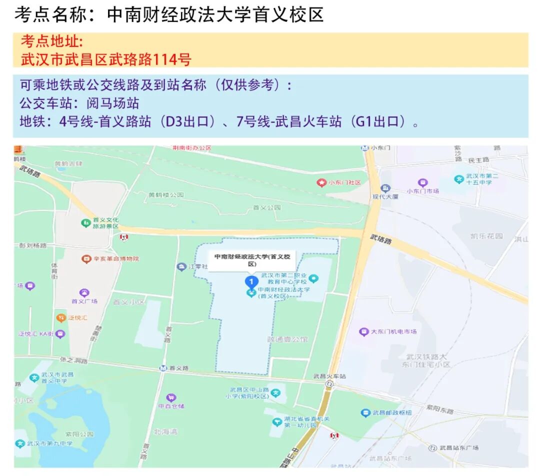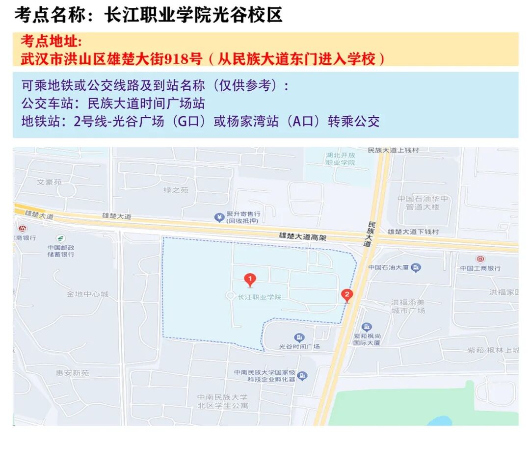 武汉考区考点地图