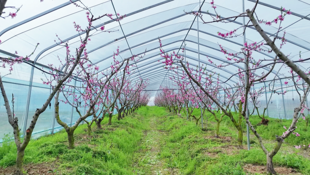 “依托专业技术团队和成熟的优质品种,我们引进了高端油蟠桃品种,桃子果面光亮、果形端正、甜度高,上市时间比较早,大概在五月初就可以上市。”祝锐说。