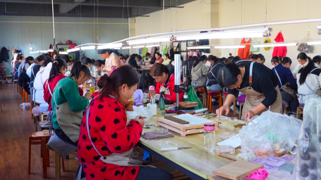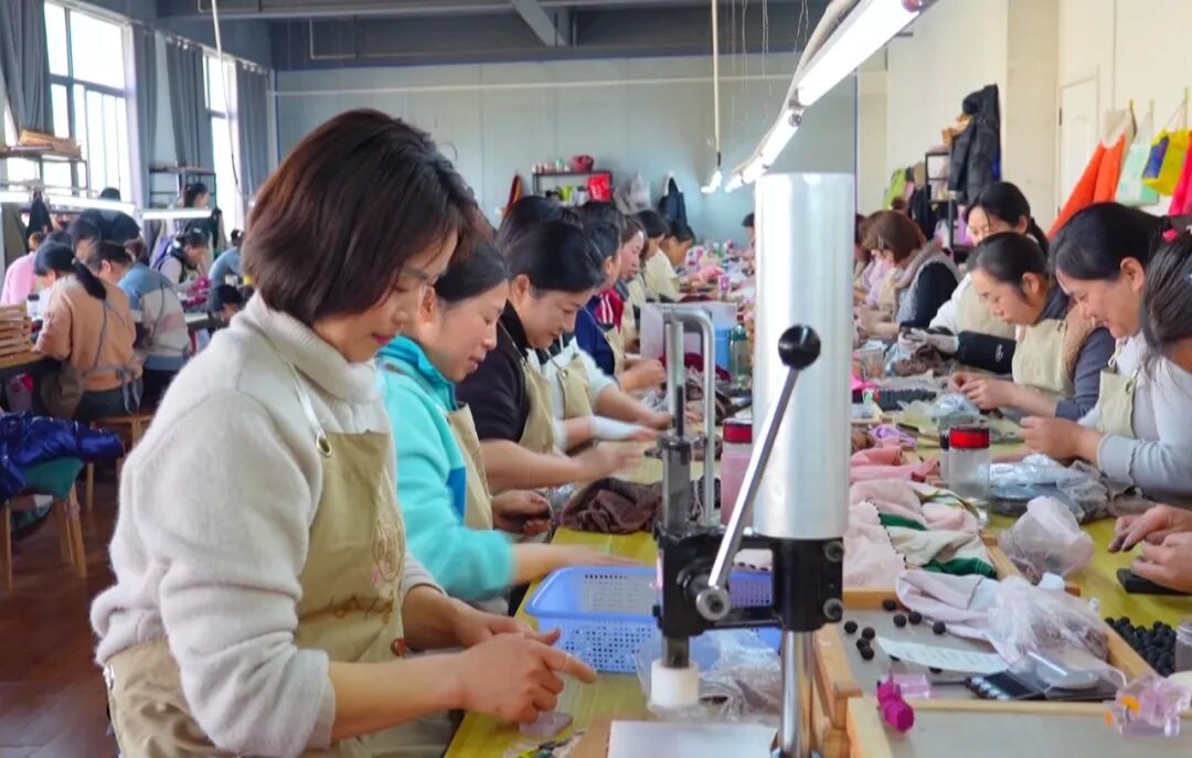 非遗活化催生“指尖经济”,非遗工坊扩至2000多平方米,带动150余名宝妈、留守妇女就近就业,实现顾家与增收双赢。
