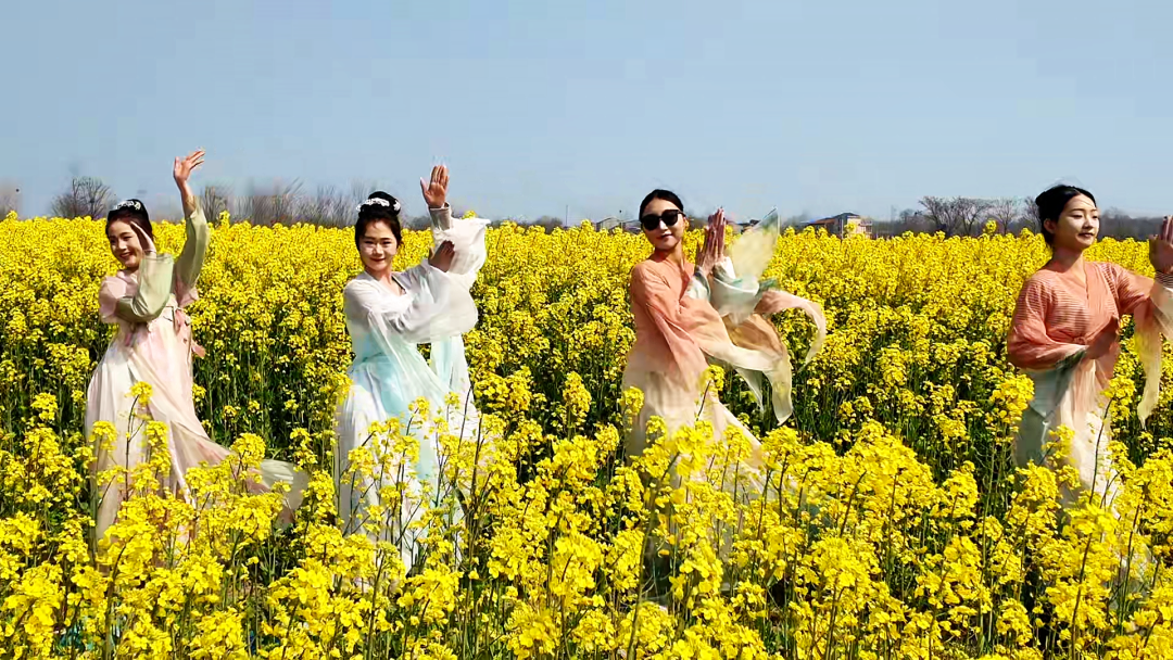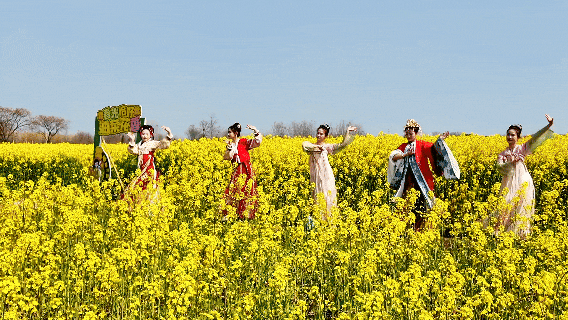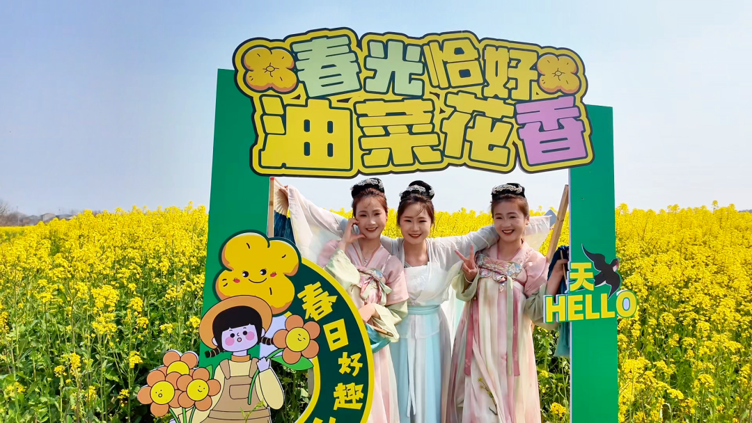 “今天天气特别好,在网上看到了这边有油菜花海,和朋友们一起来游玩的时候都是穿着古装,过来拍照很出片。”游客曹海怡说。