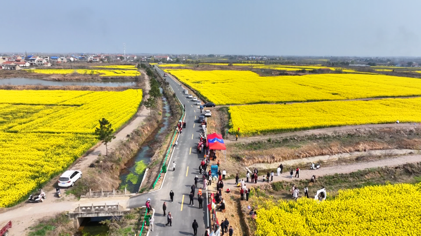 走进白沙镇义井村,沿路可见连绵起伏的油菜花田,金色花海沿澴河两岸铺展,与民居、乡道相映成趣,构成一幅清新田园画卷。田间步道游人如织,游客漫步花海、拍照留影,汉服打卡、亲子游玩等活动热闹不断。