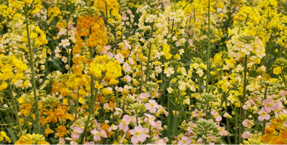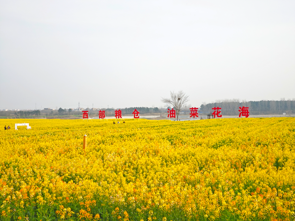 第二站来到花西乡湾湖村,千亩七彩油菜花田依澴河而卧,橙黄、橘粉、奶白交织成梦幻花海,微风拂过,花香四溢。被央视专题报道,