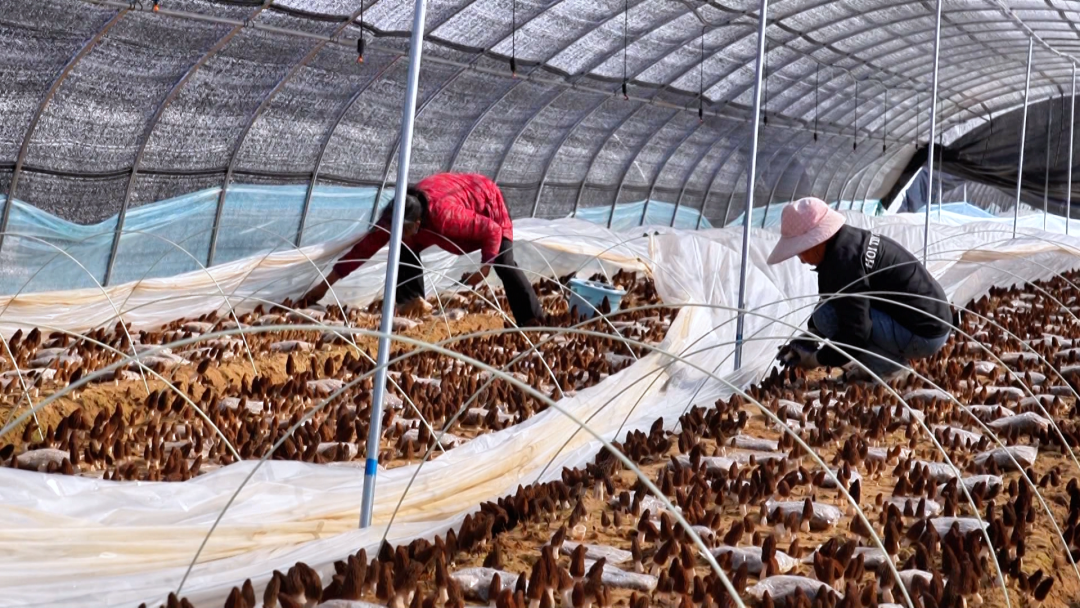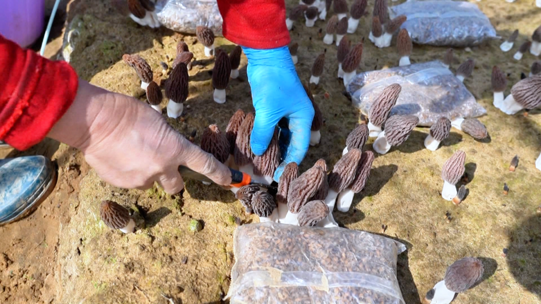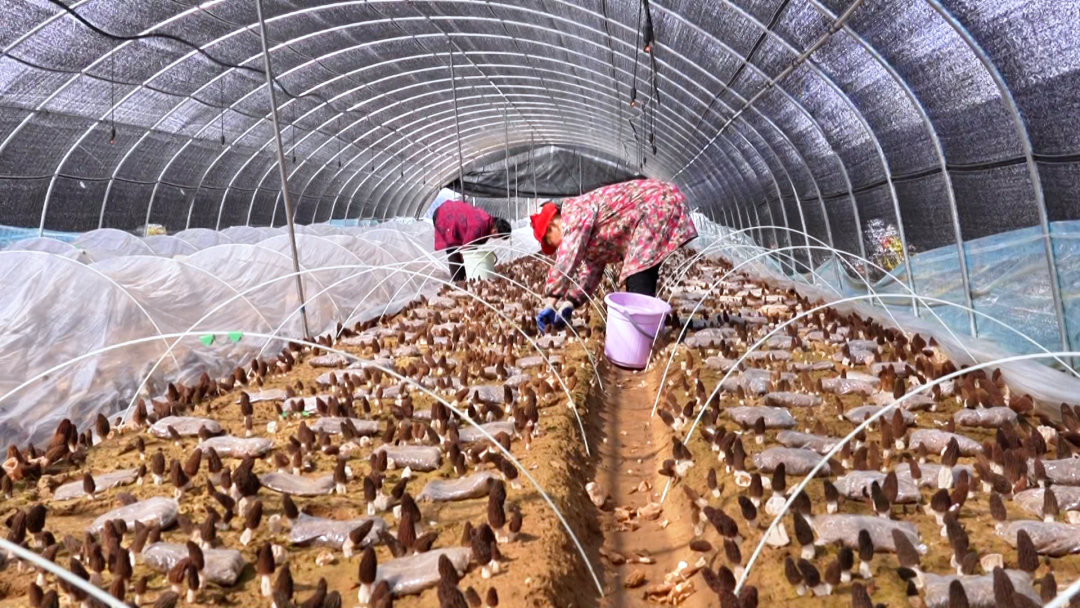 羊肚菌产业的发展,不仅带动了基地增收,更让周边村民实现了“家门口就业”。基地日常吸纳附近村民就近务工,采收高峰期可达60人,让村民在家门口端稳“就业饭碗”。