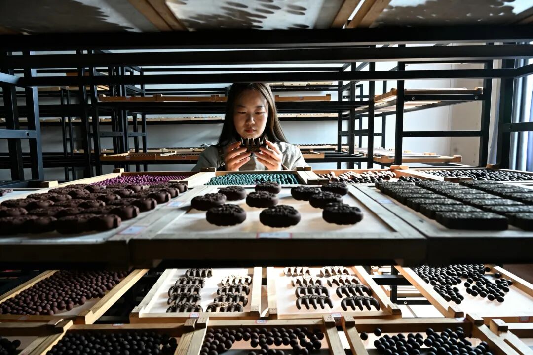孝昌合香序文化传媒公司工作人员在查看成型的药香搓成物件。