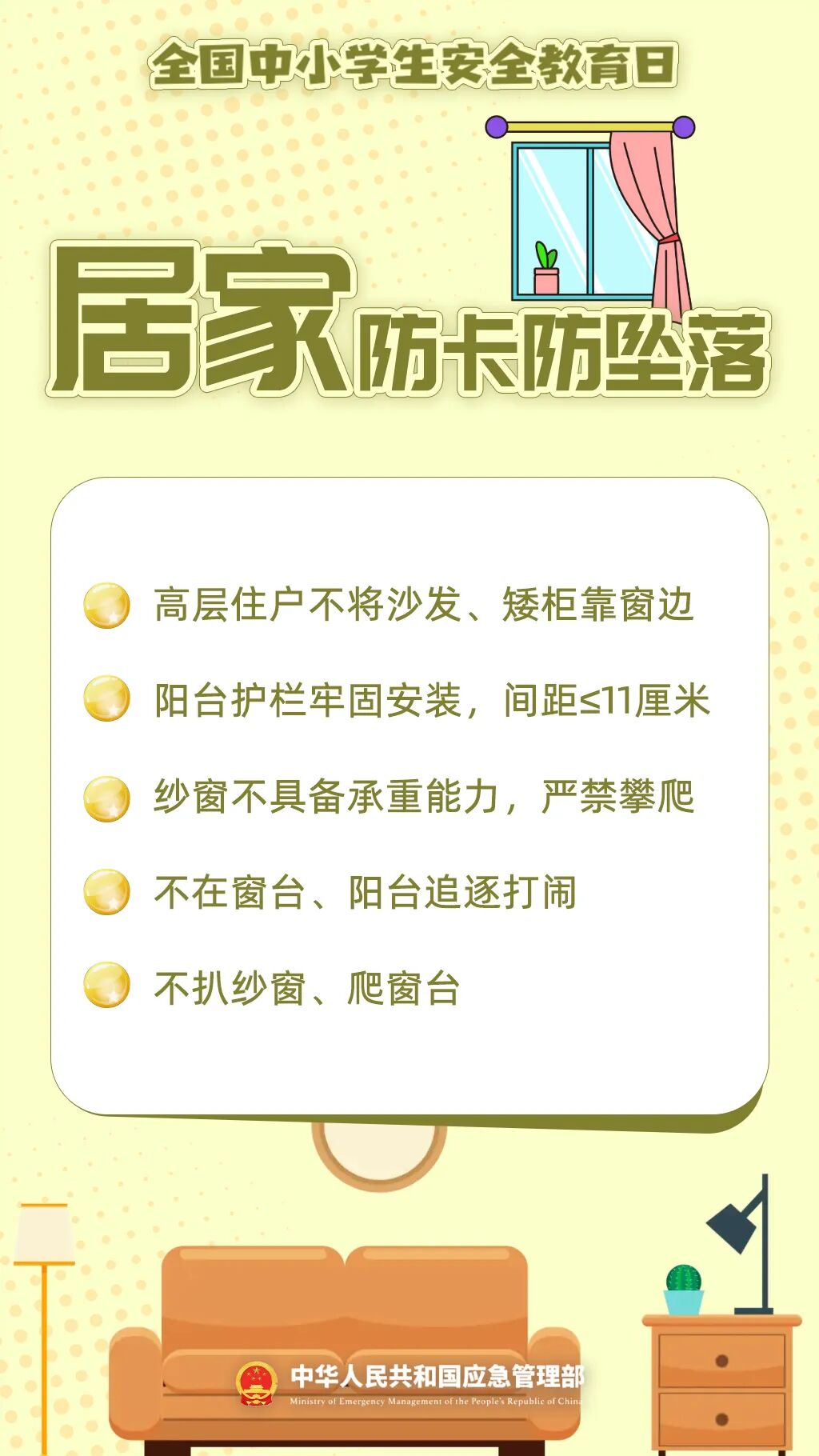 重点检查窗边防护和家具缝隙