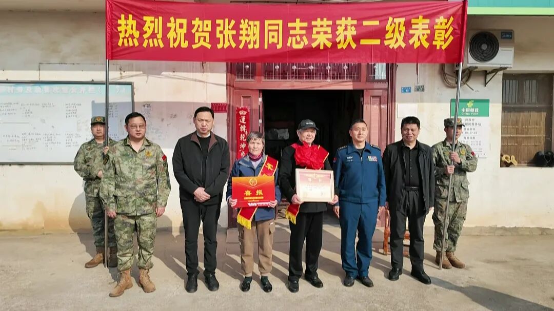 慰问现场锣鼓铿锵,“热烈祝贺张翔同志荣获二级表彰”的横幅格外醒目,邻里乡亲纷纷围观,共同见证这一光荣时刻。县人武部政委王辉将喜报郑重交到军属手中,介绍了张翔在部队的突出实绩。
