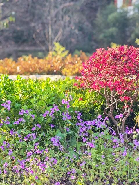 二月兰烂漫清雅,杜鹃热烈似火