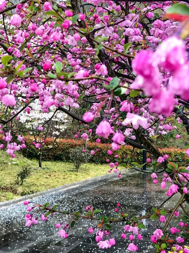 海棠艳如胭脂,樱花洁若飘雪