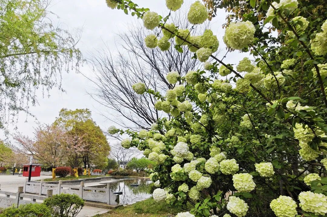 连翘金辉灼灼,绣球花温婉脱俗
