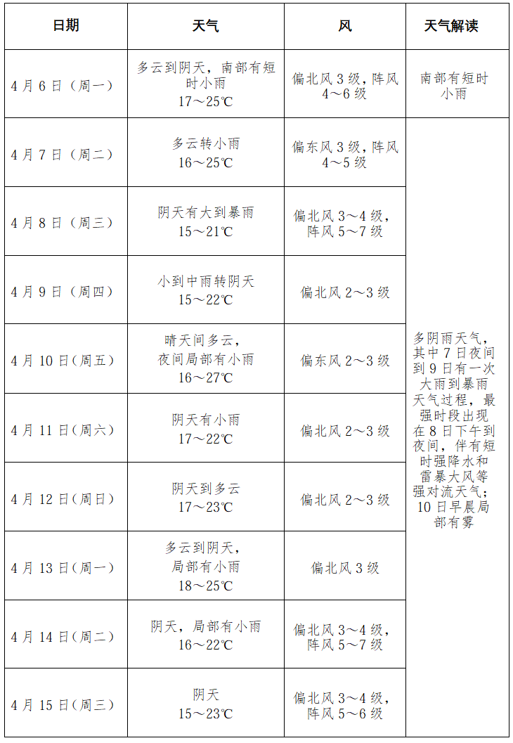 预计我市未来十天