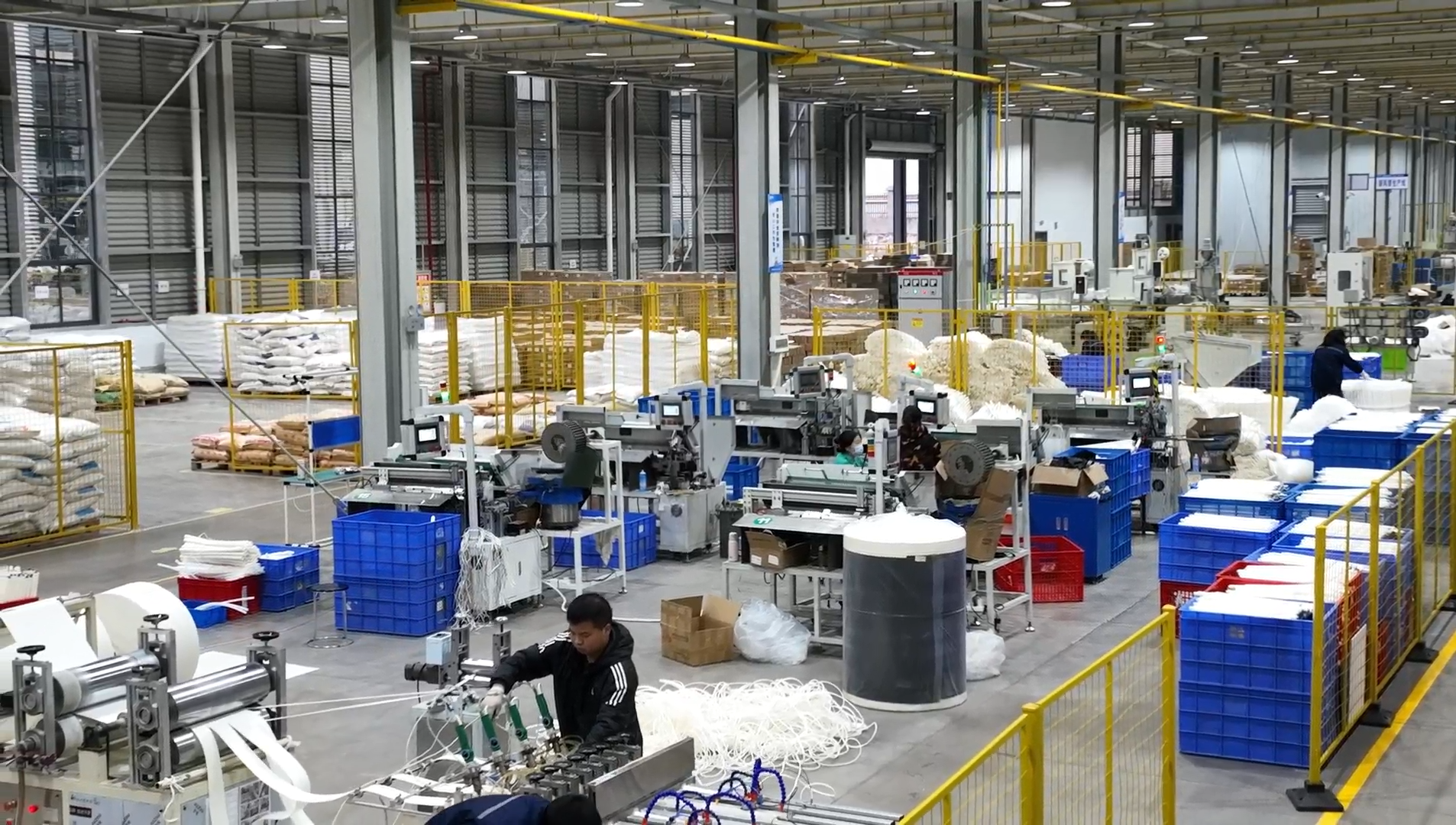 走进生产车间,空调面板生产线正满负荷运转,一块块平整光亮的空调面板鱼贯下线。另一侧的新风管生产线上,晶莹透亮的TPU材料颗粒经过挤压,变成螺旋状的管体,工人们正忙着套海绵、裁切、打包。