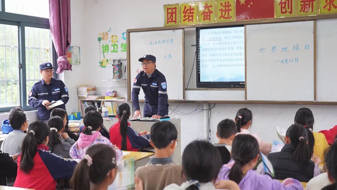 工作人员还利用班会和课后服务等时间,走进学校开展地质灾害“隐患点+风险区”智慧防灾讲堂,向中心小学发放宣传资料和地质灾害避险应急手册,传授资源利用与再生的知识,树立生态文明理念。