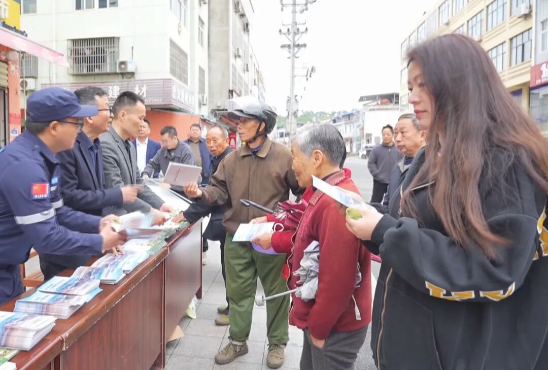 在小悟乡集镇,孝昌县自然资源和规划局、湖北省地质局第六地质大队联合社区和学校,通过悬挂醒目的宣传横幅、发放宣传手册等形式,向村民传递“珍爱自然资源 守护美丽中国”的环保理念,普及自然资源利用、防灾减灾等相关知识。