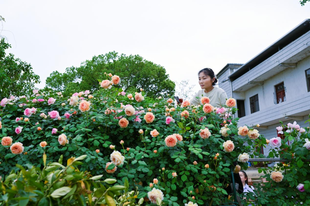 春日的丰春村,初禾花卉园里热闹得很。上百种月季开得正艳,绣球、栀子、菊花、盆栽荷花你方唱罢我登场。风一吹,满院子花香漫过田埂,醉了游人,也暖了园主何秀秀的心。