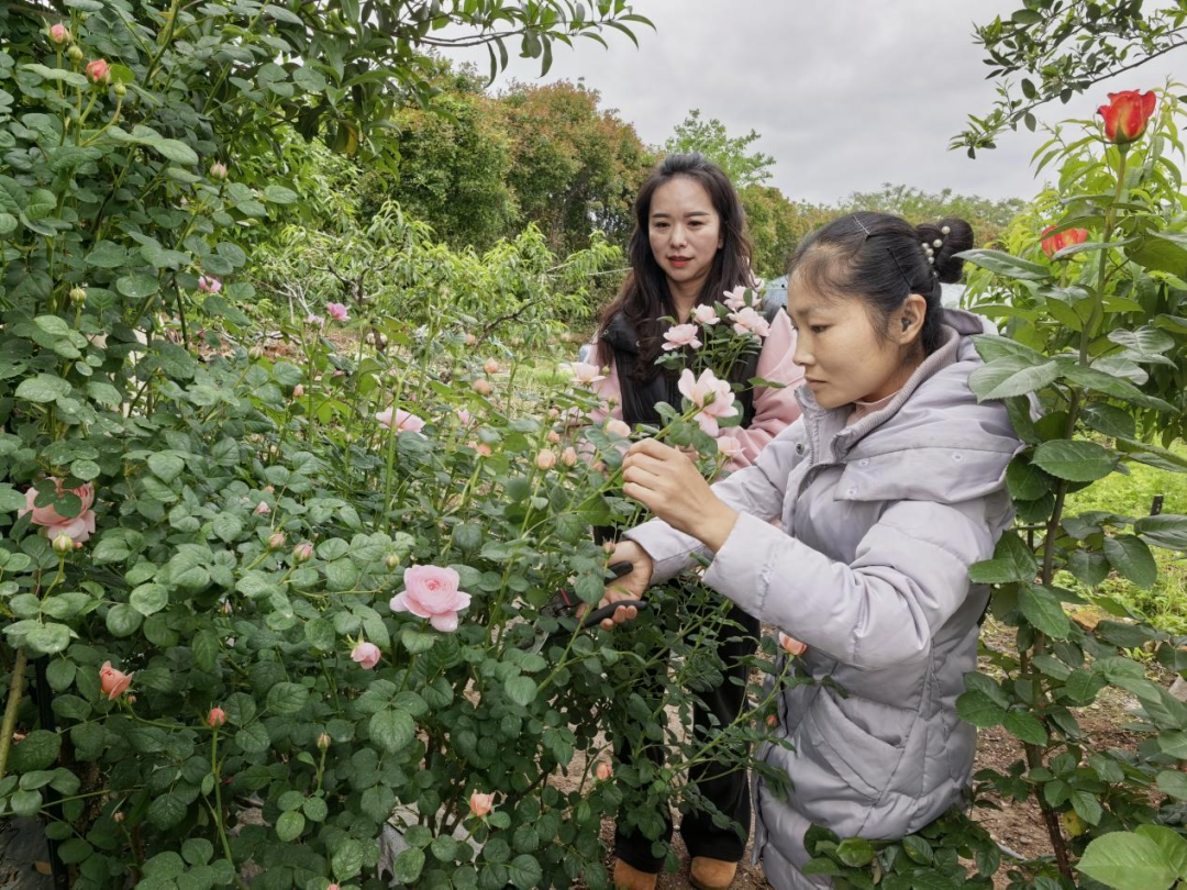 她也试着往线上闯:开淘宝店,没做起来;发抖音、视频号,看的人不多。但她没灰心,心里一直装着一个更大的愿望——不只是自己种花卖花,还想把初禾花卉园做成村里的特色产业,带着乡亲们一起干、一起挣钱,让花香飘得更远,让更多人能在家门口就把钱挣了。
