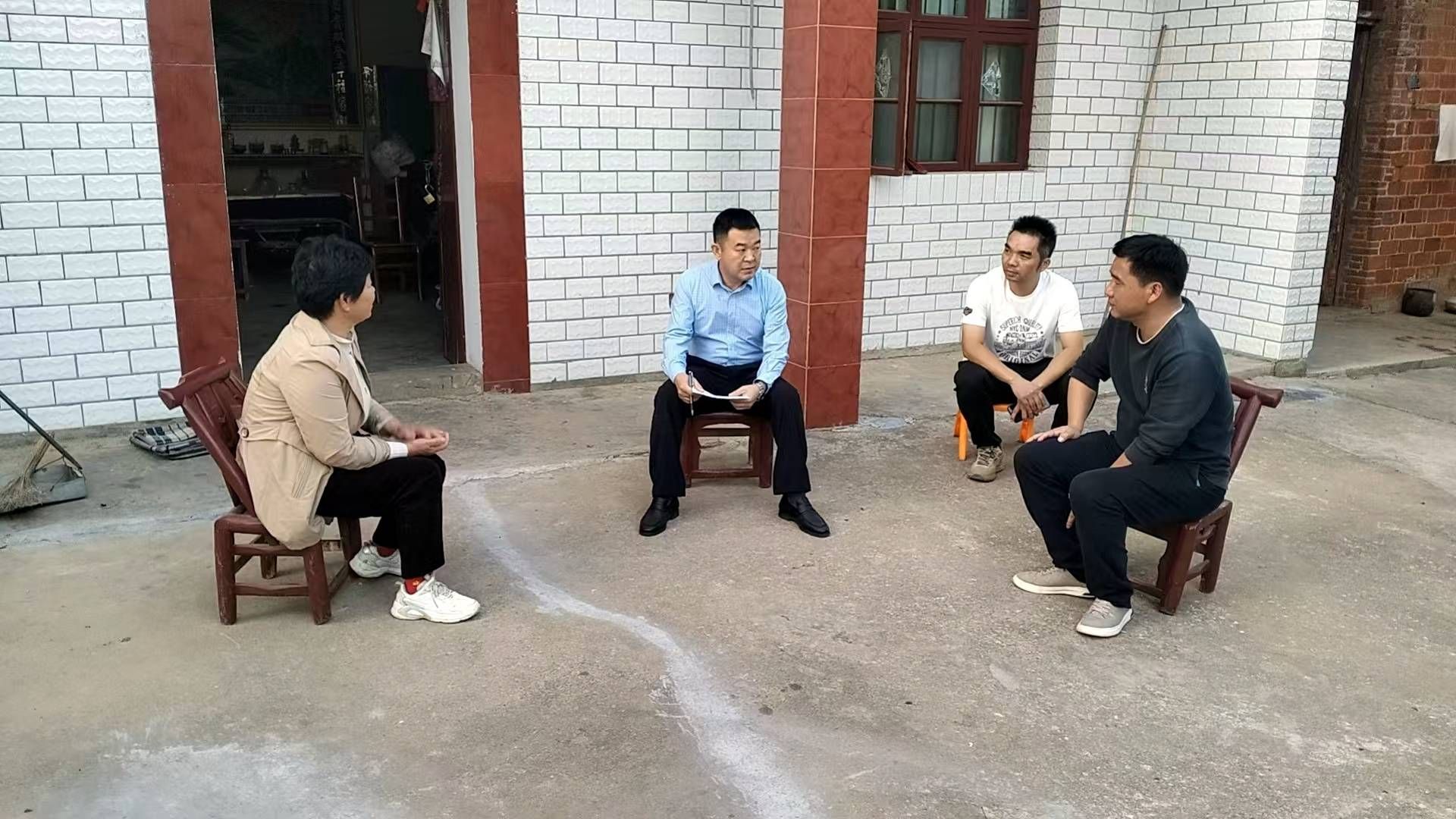 孝昌县丰山镇党委书记陈义文(左二)在丰新村夏家榨湾入户走访。(受访者 供图)